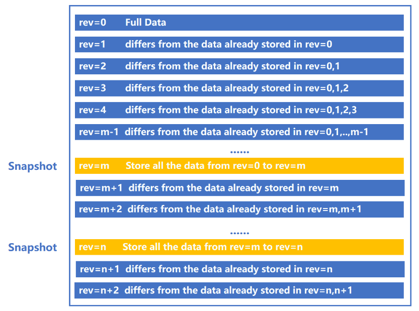 Data Retrieval: To view the complete data of a specific version, RevAnno needs to trace back to the initial version and apply the differences between each version one by one until reaching the desired version's complete data state. The following are the steps to obtain the complete data of a specific version:Retrieve the data from the initial version (usually the complete data from the first storage or snapshot data).Sequentially retrieve the differential data between each version and apply the differences to the data from the initial version.
